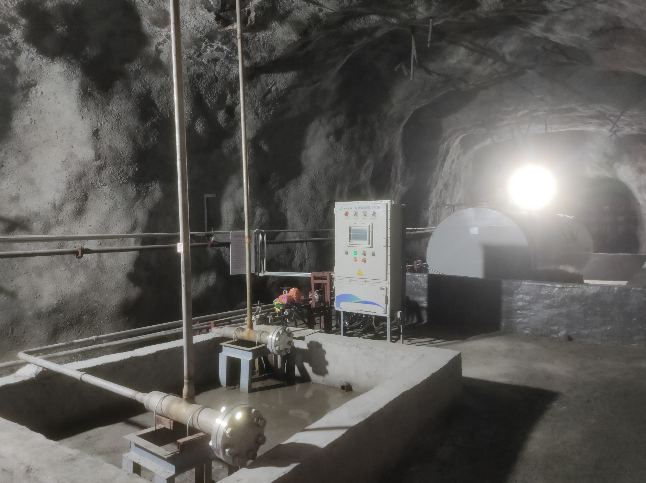 凡口鉛鋅礦井下680米智能供油系統(tǒng) 目前正有序施工中, 預(yù)計(jì)9月底完工并投入使用。該項(xiàng)目為全國(guó)首創(chuàng), 由韶關(guān)企業(yè)進(jìn)行技術(shù)攻堅(jiān) 并申請(qǐng)多項(xiàng)國(guó)家專(zhuān)利, 擬申報(bào)吉尼斯世界紀(jì)錄 “全球最深的智能供油系統(tǒng)”。 凡口鉛鋅礦井下智能供油系統(tǒng) 需在地面設(shè)置橇裝加油裝置, 并分別在地下 330米、480米和680米處 建設(shè)智能化供油系統(tǒng), 通過(guò)鉆孔鋪設(shè)輸油管線(xiàn), 將油品從地面輸送到井下。 地下330米智能加油點(diǎn), 目前已進(jìn)入收尾階段, 現(xiàn)場(chǎng)有兩根 從地面裝置接下來(lái)的輸油管, 用于工程車(chē)加油, 另一邊也有兩根輸油管輸送到 地下480米和680米的智能加油點(diǎn)。 別看油管很細(xì),鉆孔不大, 但施工難度并不小, 全長(zhǎng)3千多米的輸油管, 垂直打孔偏差不能超過(guò)1米。 作為亞洲最大的 單體鉛鋅銀礦生產(chǎn)基地, 凡口鉛鋅礦 有井下工程車(chē)輛和設(shè)備100多臺(tái), 井下用油量大。 井下智能化供油系統(tǒng)啟用后, 不僅解決井下用油安全、環(huán)保風(fēng)險(xiǎn), 同時(shí)降低生產(chǎn)用油成本, 推進(jìn)凡口鉛鋅礦建設(shè)智能化礦山, 實(shí)現(xiàn)“無(wú)人開(kāi)采”。 如果鉆孔偏差太大,就找不到鉆下來(lái)的孔,影響輸油管道的布設(shè),增大成本。3千多米有5千多個(gè)焊接點(diǎn),所有的焊接口都要達(dá)到高壓管道的焊接要求,這個(gè)項(xiàng)目是全國(guó)首創(chuàng),在全國(guó)所有礦山企業(yè)中,我們是首次使用通過(guò)輸油管道往井下輸油,并且實(shí)現(xiàn)智能控制的方案。 這個(gè)月底把地下330米加油點(diǎn)完工,開(kāi)始加油,9月底把底下480米和680米開(kāi)通使用。希望通過(guò)這個(gè)項(xiàng)目打造創(chuàng)新科技的韶關(guān)樣板,把先進(jìn)的經(jīng)驗(yàn)和技術(shù)推廣到全省、全國(guó)乃至全球。